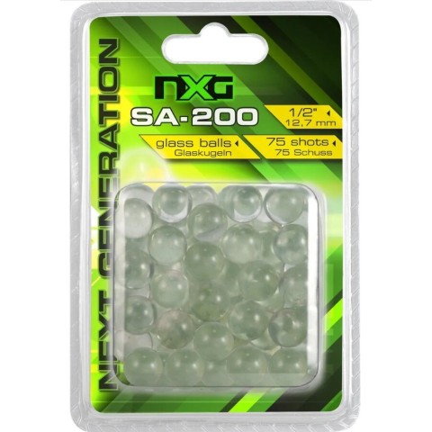 Набір скляних кульок NXG SA-200 діаметром приблизно 1/2" (12,5 мм), містить 75 штук. Вага набору — 197 г. Підходить для рогаток та інших метальних пристроїв, забезпечуючи точність і стабільність пострілу.