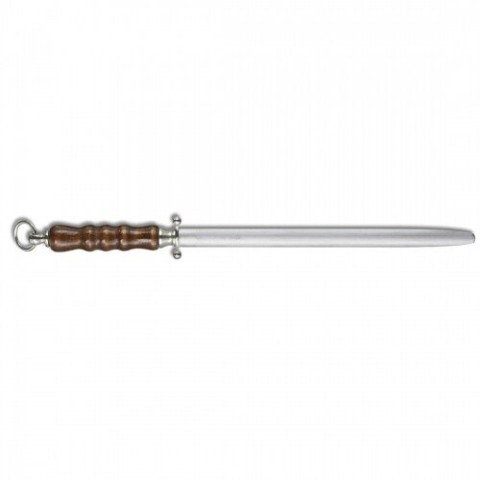Мусат круглый с тёмной деревянной рукоятью и мелкой насечкой для заточки кухонных ножей Victirinox. Достаточно всего лишь нескольких движений, чтобы вернуть ножам былую остроту. Рукоять оборудована специальным кольцом, позволяющим повесить мусат в любое место на вашей кухне. Длина насечки – 30 см.