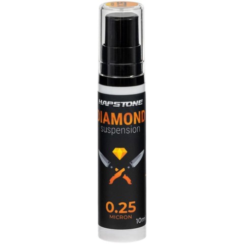 Алмазна суспензія Hapstone призначена для полірування ножів, забезпечуючи дзеркальний блиск крайки без подряпин завдяки високоякісному алмазному порошку. Для використання нанесіть необхідну кількість суспензії на полірувальну поверхню, рівномірно розподіліть і дайте їй висохнути. Оскільки залишки суспензії можуть залишатися на притирі, рекомендується використовувати окремі бланки для різних зернистостей. Якщо на шкірі накопичилися залишки, видаліть їх ножем або спеціальним інструментом перед нанесенням свіжої суспензії.