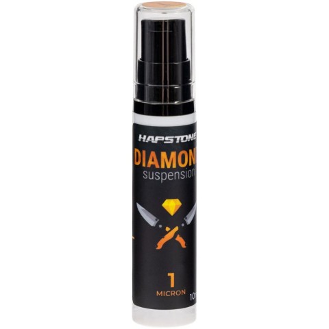 Алмазна суспензія Hapstone призначена для полірування ножів, забезпечуючи дзеркальний блиск крайки без подряпин завдяки високоякісному алмазному порошку. Для використання нанесіть необхідну кількість суспензії на полірувальну поверхню, рівномірно розподіліть і дайте їй висохнути. Оскільки залишки суспензії можуть залишатися на притирі, рекомендується використовувати окремі бланки для різних зернистостей. Якщо на шкірі накопичилися залишки, видаліть їх ножем або спеціальним інструментом перед нанесенням свіжої суспензії.