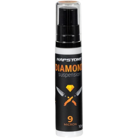 Алмазна суспензія Hapstone призначена для полірування ножів, забезпечуючи дзеркальний блиск крайки без подряпин завдяки високоякісному алмазному порошку. Для використання нанесіть необхідну кількість суспензії на полірувальну поверхню, рівномірно розподіліть і дайте їй висохнути. Оскільки залишки суспензії можуть залишатися на притирі, рекомендується використовувати окремі бланки для різних зернистостей. Якщо на шкірі накопичилися залишки, видаліть їх ножем або спеціальним інструментом перед нанесенням свіжої суспензії.