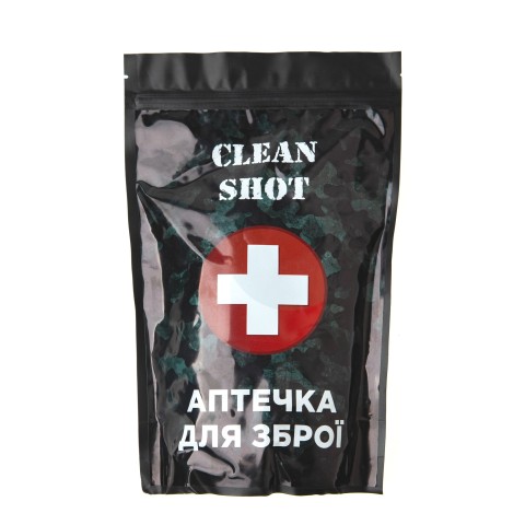 Набір складається з 7 упаковок серветок різного призначення: Серветки CLEAN SHOT усуває ОБМІДНЕННЯ (10 шт) Серветки CLEAN SHOT усуває СВИНЕЦЬ (10 шт) Серветки CLEAN SHOT для зберігання та консервації зброї (10 шт) Серветки CLEAN SHOT ЗИМОВИЙ ЗАХИСТ (10 шт) Серветки CLEAN SHOT «М» МОДЕРНІЗОВАНІ (10 шт) Серветки CLEAN SHOT для СТАЛІ (10 шт) Серветки CLEAN SHOT УНІВЕРСАЛЬНІ (10 шт) Зручна упаковка із зіп-локом, пласка, не займає багато місця у кишені, та, на відміну від пляшок - не протікає і не розливається. Виготовлено в Україні.