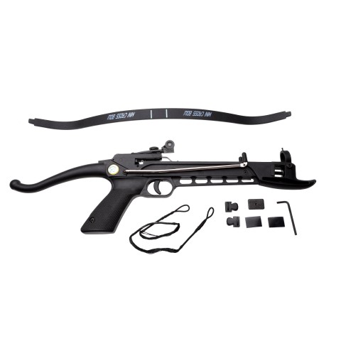 Прицельная дальность стрельбы: 15-20 м. В комплект поставки входит: арбалет, плечи, тетива,открытый регулируемый прицел, 3 алюминиевые стрелы.