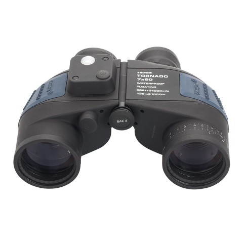 KONUS Tornado 7x50– морський тактичний бінокль з фіксованою кратністю 7х і великим діаметром об'єктива (50 мм). Придатний для використання в екстремальних умовах, навіть при нестачі зовнішнього освітлення, він формує досить «соковиту» і контрастну картину. Має вбудований компас з підсвічуванням і далекомірну сітку для візуального визначення розмірів і відстаней. Підсвічування живиться від стандартних міні-батарейок LR44 («таблеток»).Технічні характеристики:Збільшення: 7xДіаметр об'єктива: 50 ммПоле зору на 1000 м: 132 мКутове поле зору: 7.5ºМінімальна дистанція фокусування: 7 мКорекція діоптрій: +5/-5Діаметр вихідної зіниці: 7.1 ммВіддалення вихідної зіниці: 18 ммФактор сутінків: 18.7Світлосила: 50.4Конструктивні особливості:Оптичний дизайн: PorroПризми: BaK-4Просвітлення: багатошарове (Multi-Coated)Фокусування: роздільнеРегулювання міжзіничної відстані: 56-74 ммНаочники: типу Fold Down, що складаютьсяКорпус: полікарбонат/метал з протиковзким гумовим покриттямАзотне наповнення (Nitrogen filled)Водонепроникний (Waterproof)Сітка далекоміраКомпас з підсвічуваннямКріплення на штативГабарити:Розміри бінокля: 205 x 145 x 70 ммВага бінокля: 890 гРозміри упаковки: 228 x 200 x 105 ммВага упаковки: 1290 гКомплектація:БінокльНашийний ремінецьМ'який чохол з ремінцемЗдвоєні кришки на окуляриКришки на об'єктив (на ремінцях, не відстібаються)Серветка для оптикиБатарейки типу LR43 (2 шт.)Інструкція