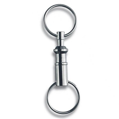 Надійний і міцний карабін для ножа Victorinox. Виробництво - Швейцарія. Виготовлений з нікельованої металу в оригінальному кольорі металік. Оснащений двома роз'ємними кільцями. Діаметр карабіна - 25 мм.