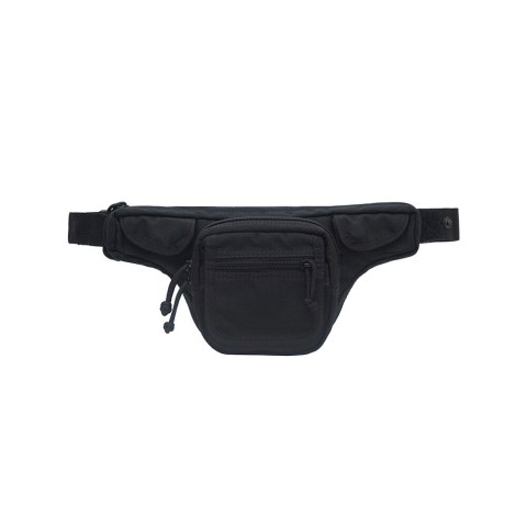 Фастекс поясного ремня расположен фиксировано в близости от самой сумки, что позволяет контролировать его в экстремальной ситуации. Лента открытия фиксируется на велкро (липучку) и дублируется кнопкой, это препятствует случайному открытию оружейного отделения. Поясной ремень выполнен из 38 мм полиамидной стропы, длины которой достаточно для ношения сумки на груди через плече.