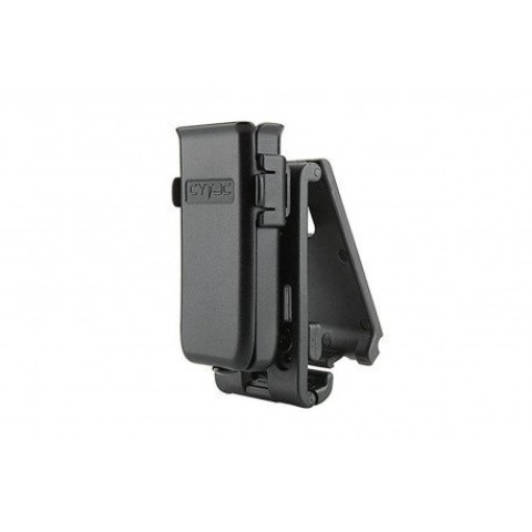 Універсальний паучер для магазинів Cytac підходить для пістолетних магазинів калібру 9 мм, .40 та .45; може розміщувати боєприпаси в одинарному чи подвійному штабелі. Виготовлений із полімеру військового класу для стійкого використання. Компоненти з боків та внизу власника магазину регулюються, щоб відповідати більшості розмірів магазинів зброї, представлених на ринку. Кріпиться на затискач для ременя.