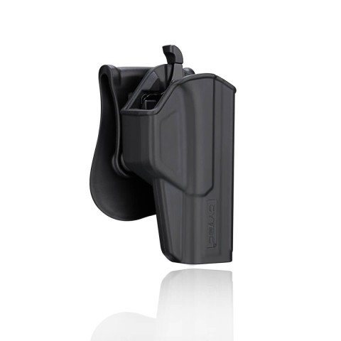 У кобурі Cytac T-ThumbSmart використовується дизайн розблокування великим пальцем, заснований на концепції безпечного носіння або використання пістолета, щоб краще забезпечити безпеку та швидкість виймання. Він підходить для бою, навчання стрільбі та особистого захисту. Для деяких регіонів, де заборонені кобури з вийманням за допомогою вказівного пальця, кобура T-ThumbSmart є ідеальним спорядженням. У кобурі T-ThumbSmart використовується безпечний механізм розблокування для великого пальця, що забезпечує абсолютно новий рівень безпеки та маскування. Кнопка розблокування великим пальцем захована між тілом користувача та корпусом кобури, що ефективно запобігає викраденню зброї злочинцями. Виготовлений із міцного полімерного пластику. Підходить для Glock 43.