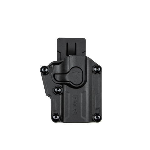 Cytac Mega-Fit Holster - універсальна і добре сумісна кобура. Передні 5 гвинтів дозволяють легко та швидко відрегулювати простір кобури, щоб вона була сумісна з сотнями повнорозмірних пістолетів. Має легке та зручне розблокування вказівним пальцем, щоб звільнити пістолет. Це дає вам більш простий та надійний доступ. Виготовлена з високотехнологічних полімерних матеріалів, що підходить для того, щоб носити протягом тривалого часу, а також ефективно знижує ймовірність того, що зброя зрушиться або впаде. Кобура з армійського полімеру більш міцна та довговічна. Процес внутрішнього полірування знижує тертя об корпус пістолета.