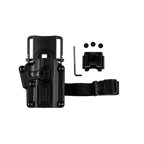 Cytac Mega-Fit Holster - універсальна і добре сумісна кобура. Передні 5 гвинтів дозволяють легко та швидко відрегулювати простір кобури, щоб вона була сумісна з сотнями повнорозмірних пістолетів. Має легке та зручне розблокування вказівним пальцем, щоб звільнити пістолет. Це дає вам більш простий та надійний доступ. Виготовлена з високотехнологічних полімерних матеріалів, що підходить для того, щоб носити протягом тривалого часу, а також ефективно знижує ймовірність того, що зброя зрушиться або впаде. Кобура з армійського полімеру більш міцна та довговічна. Процес внутрішнього полірування знижує тертя об корпус пістолета. Має функцію обертання на 360 градусів для комфортнішого положення кобури саме для вас.