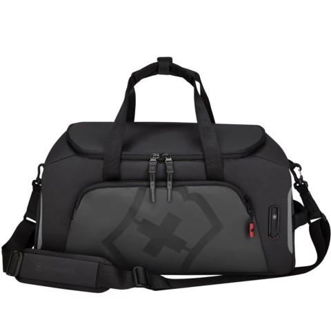 Victorinox Travel TOURING 2.0 Sports Duffel (чорна) – дорожня сумка середнього розміру на 33 л. Спортивний дизайн для тих, хто веде активний спосіб життя 24 години на добу, 7 днів на тиждень. Простора всередині, вона є ідеальним другом для тренажерного залу, басейну. Виконана з комбінації поліефірних тканин щільністю 600D з покриттям та ламінованого матеріалу, він допоможе вам сміливо вирушити на активні пригоди. Преміальна колекція Touring 2.0 вміло поєднує висококласні матеріали з максимально функціональною конструкцією.