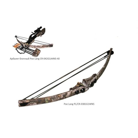Композитная дуга с натяжными роликами и тетивой для арбалета Poe Lang CR-042G1A4NS-40. Имеет камуфляжное покрытие. Сила натяжения: 68 кг, длина: 72 см.