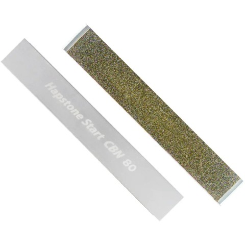 Точильні камені Hapstone Start CBN призначені для використання в точильних системах Hapstone і відмінно підходять для заточування ножів з найрізноманітніших сталей. Точильний камінь Hapstone Start CBN складається з пластини CBN з робочою поверхнею 152 x 25 мм, товщиною 2 мм, яка прикріплена до алюмінієвої основи 160 мм, товщиною 3 мм, зі скошеними кінцями для надійного утримання.