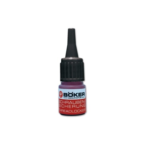 Високоякісний фіксуючий клей Böker можна дуже точно наносити за допомогою тонкої насадки, що дозує, і він ідеально підходить для всіх типів ножів. Через низький крутний момент зазвичай дуже маленьких гвинтів «низька міцність» є оптимальною. Клей виробляється в Німеччині та витримує температуру від -60 до +150°С. Остаточна міцність досягається через три-шість годин за кімнатної температури.