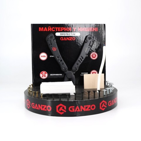 Тейбл-тент Ganzo дозволить вам продемонструвати весь функціонал мультитулів. Дозвольте Вашому покупцю випробувати мультитул "у справі" - перекусити провід, перерізати папір, вкрутити або викрутити шуруп. Після тесту сумнівів не залишиться!