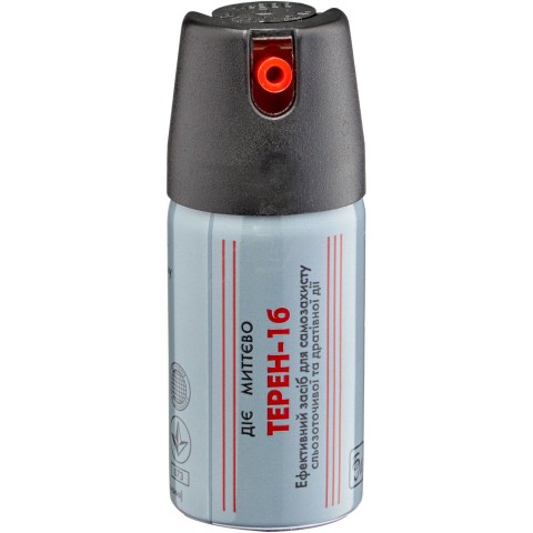Вироби "Терен-1Б" (ТУ У 29.6-19485052-019-2002 призначені для використання цивільними особами в якості засобу самозахисту і являють собою балони аерозольного типу, заповнені препаратом, що містить речовина речовина сльозоточивої та дратівної дії (ірритант) - морфолид пеларгоновой кислоти. Препарат чинить вплив "конусом" аерозольного хмари, він ефективний при застосуванні як проти осіб, які перебувають у стані алкогольного сп'яніння, так і проти собак. Вироби є однофункціональними, невідновлювальними і неремонтованими. Застосовуваний склад не руйнує озоновий шар. Виріб сертифікований.ЗАСТОСУВАННЯ