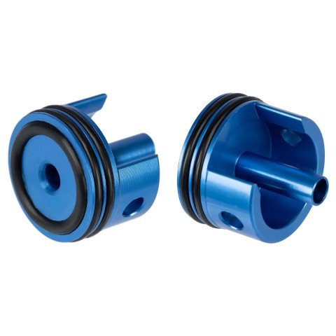Голова циліндра CYMA C118 призначена для страйкбольних приводів з гірбоксами 2 і 3 версії. Виготовлена з алюмінію, вона забезпечує високу механічну міцність і поліпшену компресію в циліндро-поршневій групі, що сприяє підвищенню стабільності і потужності пострілу. На тильній частині голови циліндра розташований гумовий демпфер, який знижує ударні навантаження на корпус гірбокса і зменшує шум при роботі механізму. Додатково, два ущільнювальних кільця забезпечують герметичність з’єднання з циліндром, запобігаючи витоку повітря і покращуючи ефективність роботи системи.