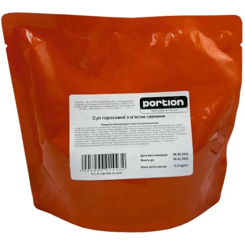 Готовое блюдо Portion Суп гороховий з м’ясом свинини 500г, реторт-пакет