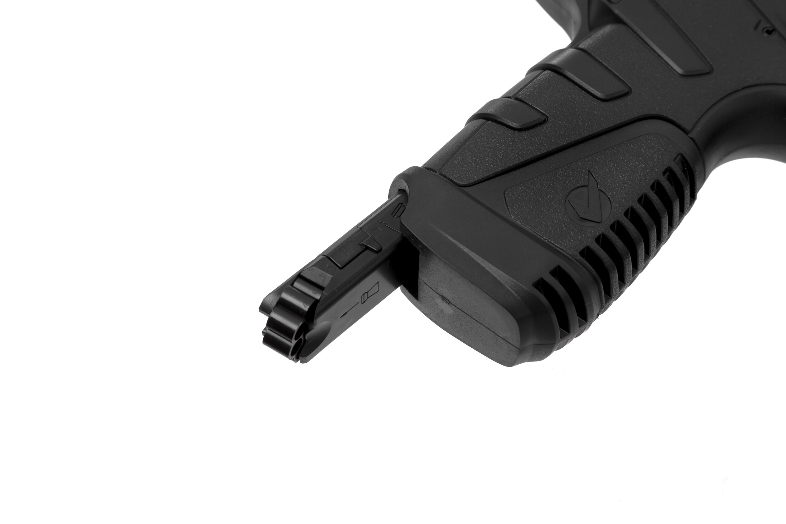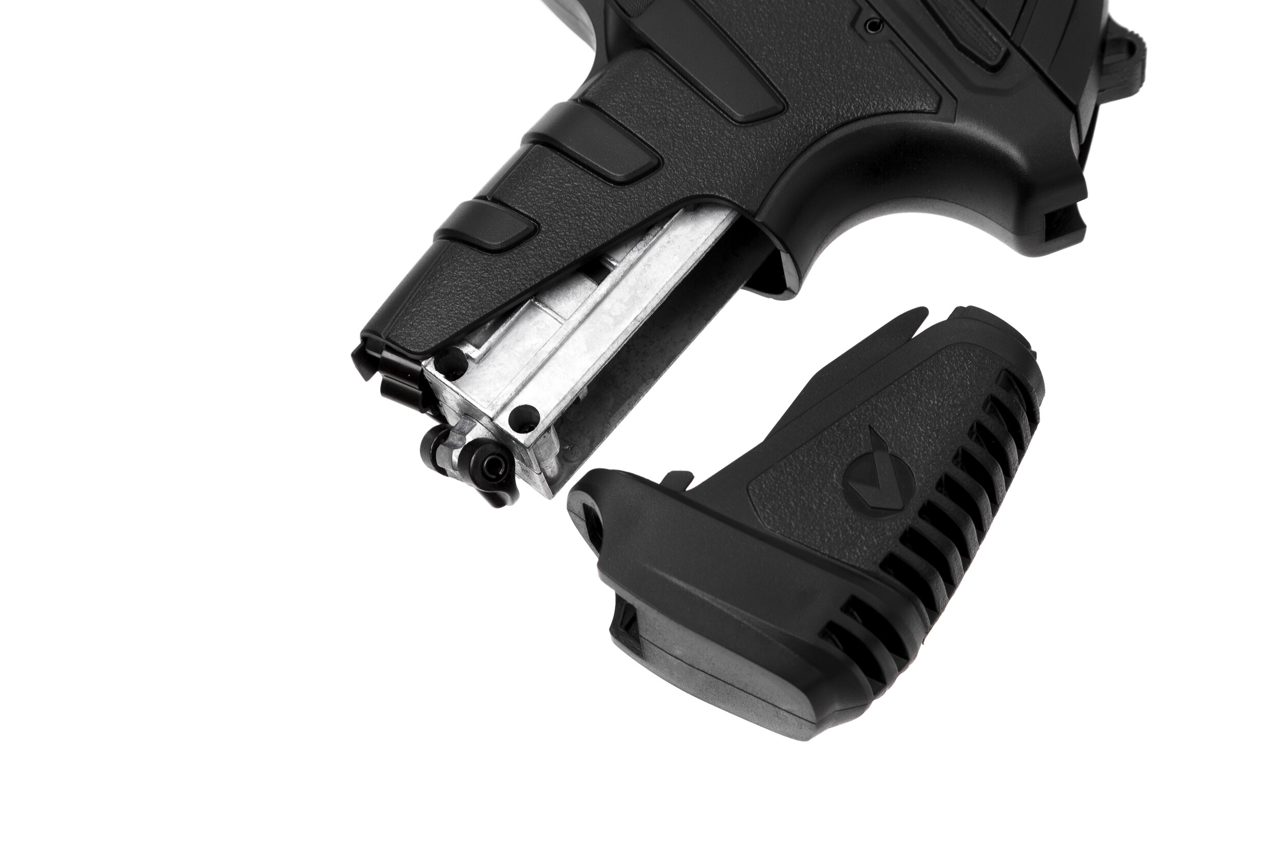 ДетальнішеТекстуроване пластикове руків'я цього пневматичного пістолета лежить в руці як влите. Функція BlowBack повторює рух затворної рами в момент пострілу, імітуючи тим самим роботу реальної бойової зброї. Пістолет має нарізний ствол калібру 4,5 мм та призначений для стрільби металевою обмідненою кулькою. 16 кульок поміщається в магазин пістолета, так що власник може вести досить швидкий вогонь. У момент пострілу кулька отримує початкову швидкість в 138 м/c.