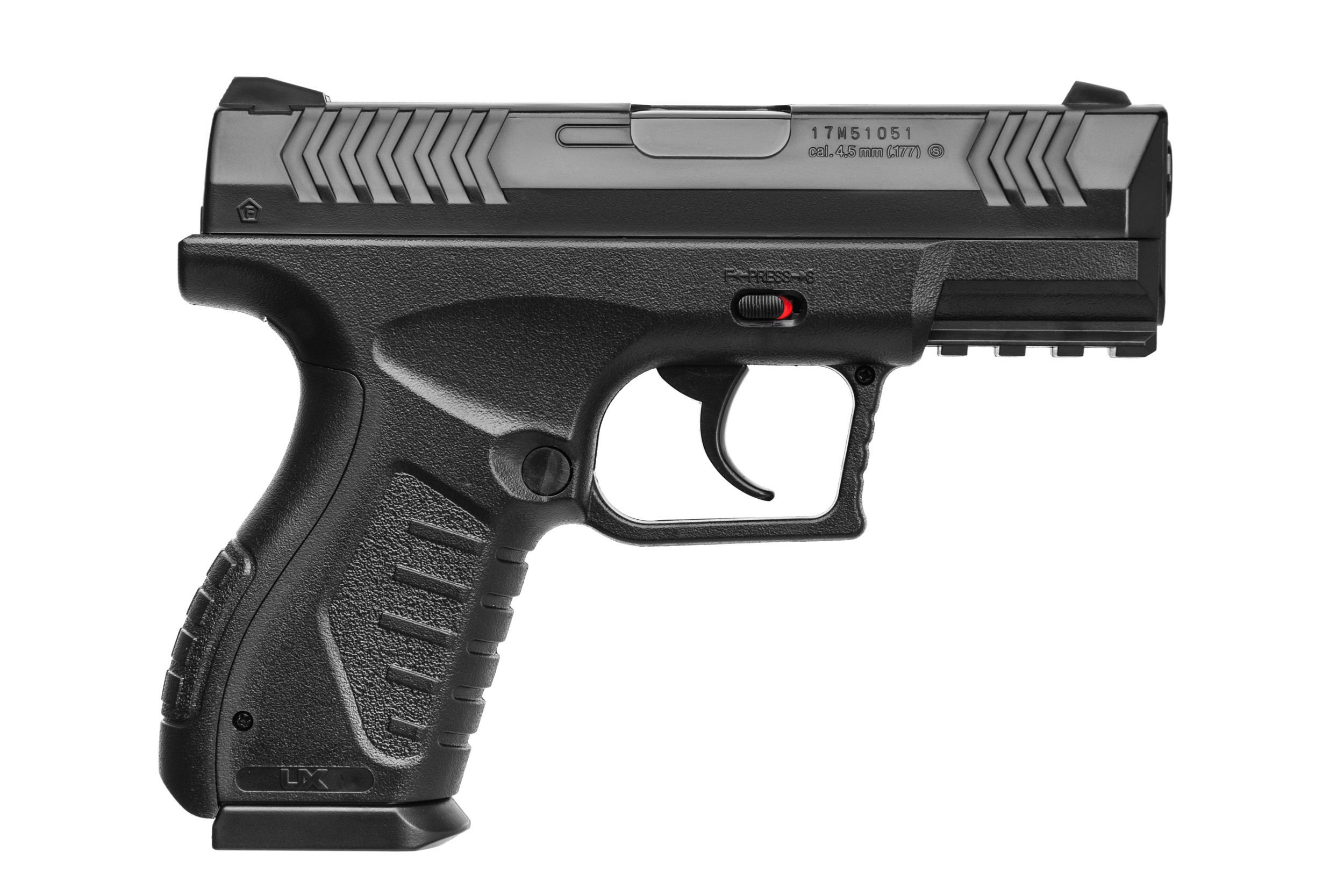 ДетальнішеПістолет Umarex XBG володіє обоймою на 19 патронів для швидкої перезарядки і працює від одного 12 г балона CO2. Цей легкий і компактний пістолет стріляє 4.5 мм кульками з початковою швидкістю 120 м / с, має фіксовані прицільні планку і мушку і взвод подвійної дії. Плюси Компактний розмір Вбудована планка Пикатинни Швидкість стрільби залежить від частоти натискання на гачок