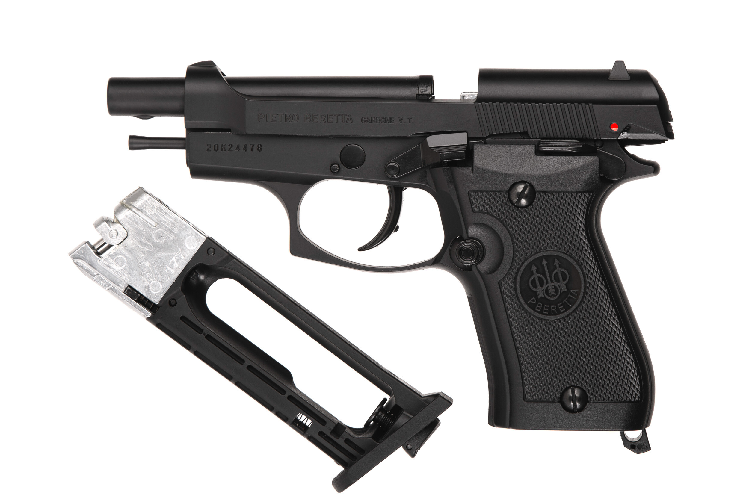 ДетальнішеUmarex серйозно ставиться до своїх ліцензія . Ця CO₂ копія Beretta Mod . 84 FS має всі переваги оригіналу : він добре лежить в руці і простий в експлуатації . Міцний суцільнометалевий пістолет має змінний магазин , що вміщає 17 ть 4,5 - мм кульок BB і 12 - грамову капсулу з CO₂ . Затвор , двосторонній запобіжник і важіль зняття затвора забезпечують реалістичне поводже ння і навчання . Завдяки своїй високий енергії і потужному ефекту віддачі (Blowback), цей пістолет справ ляє воістину автентичне враження .