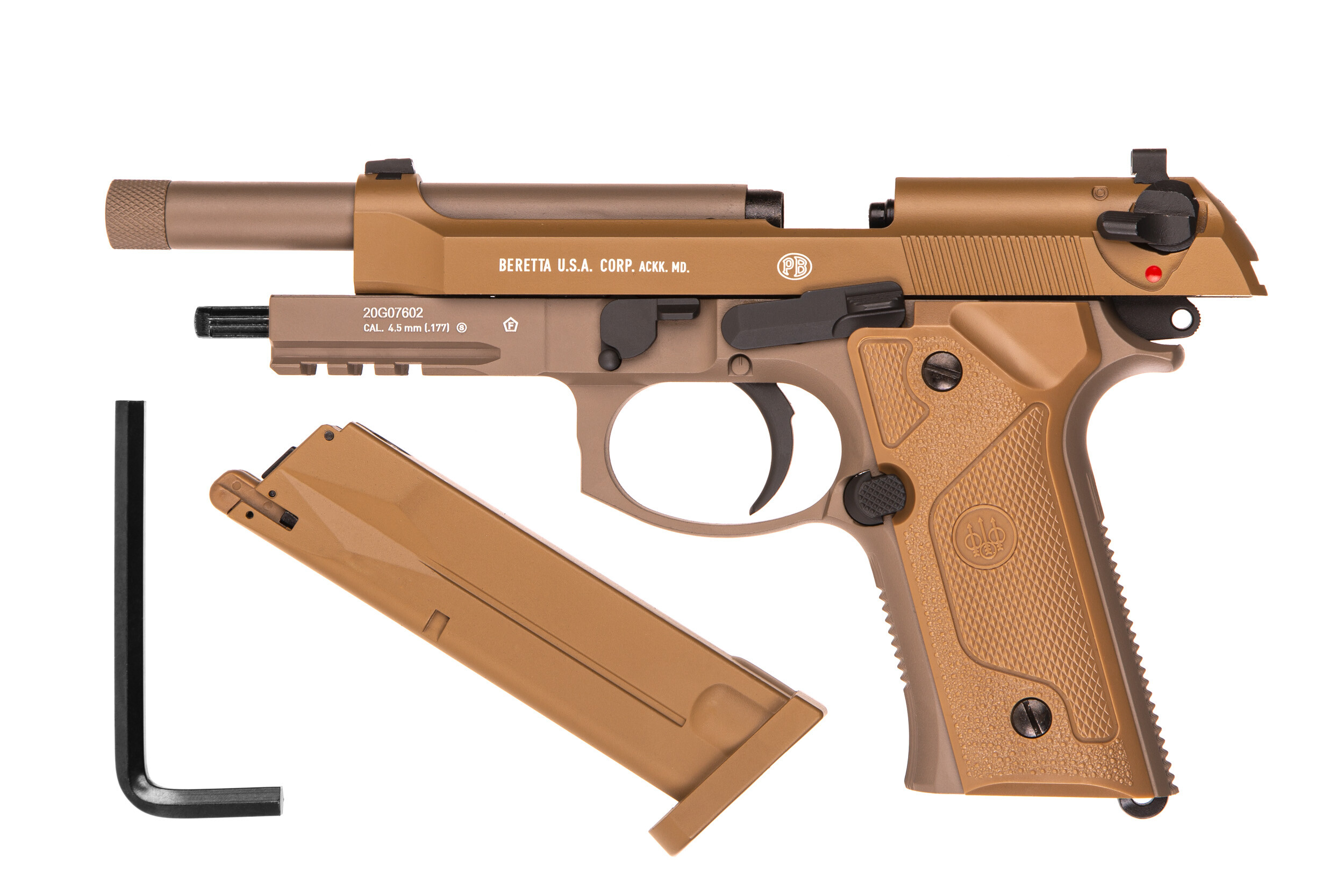 ДетальнішеПневматичний пістолет Umarex Beretta M9A3 FDE фірми UMAREX. Компанія широко відома, як виробник пневматичного і газової зброї, що є точною копією своїх «вогнепальних побратимів». Цьому виробнику належать права на виробництво копій зброї від всесвітньо відомих збройових марок. Представлена модель повністю виготовлена з металу. Рухомий затвор з функцією Blowback. Ствол сталевий, гладкий із зовнішнім різьбленням для супрессора або глушника. Під стволом розташована планка для додаткового обладнання. Рукоятка зручно підігнана під руку, в ній знаходиться магазин на 15кульок ВВ з відсіком для 12ти грамового балона СО2. Модель пістолета виконана в кольорі пустельного камуфляжу FDE (Flat dark earth). Вага пістолета, його бездоганне зовнішню схожість з бойовим, тактильні відчуття, система Blowback - дасть вам відчуття того, що у вас в руках легендарна бойова Beretta.