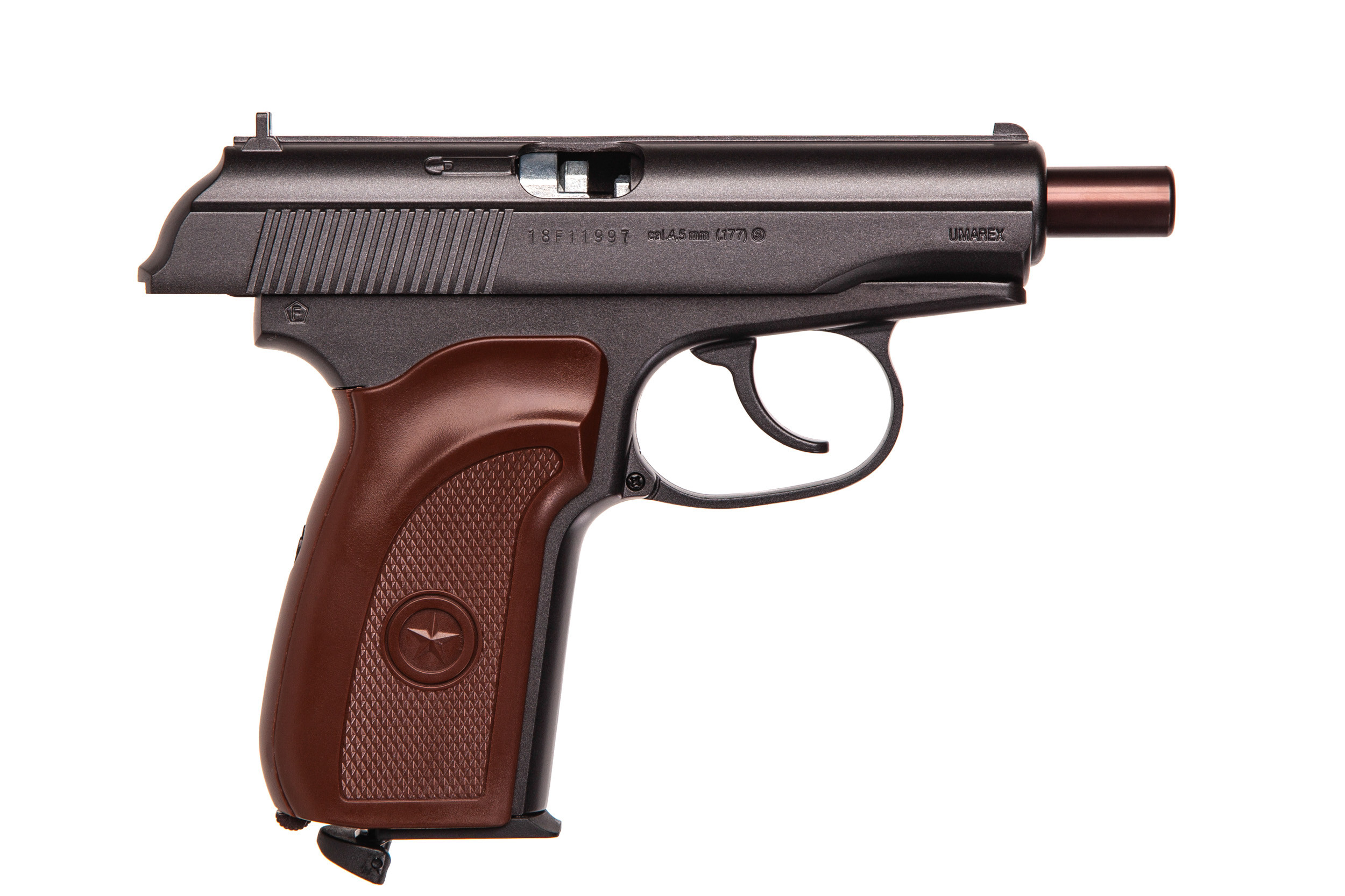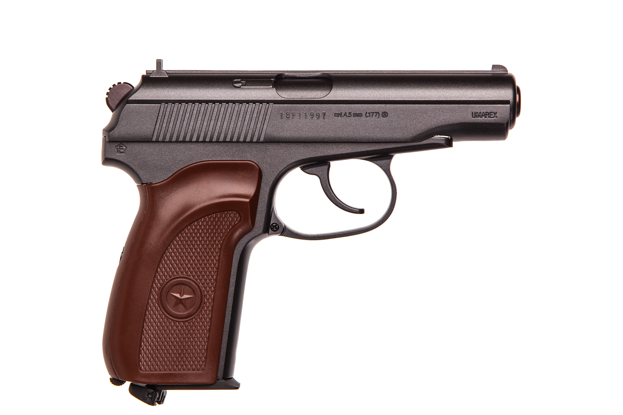 ДетальнішеХарактеристики Makarov Ultra Blow Back Точно відтворений пневматичний аналог всім відомого ПМ (пістолета Макарова) від Umarex дуже точно передає всю красу стрільби з оригіналу. Затворна рама і сам корпус Makarov Ultra BlowBack сконструйовані з якісного сплаву металу. Зовнішню схожість з бойовим прототипом забезпечує матовий металевий відтінок і характерна накладка із пластику на рукоятці. Затворна рама повністю рухлива. Магазин на 18 куль 4.5 калібру, типу ВВ. Приціл і мушка пістолета зроблені відкритими, без можливості регулювання, при цьому вони забезпечують прицільну точність до 25 метрів. Висока швидкість кулі на вильоті - 120 м / с і енергія пневматики в 2.5 Дж, роблять Makarov Ultra досить сильною «чоловічий іграшкою». Стовбур пістолета виконаний зі сталі, гладкий, довжина - 9 см. Загальна довжина - 16.2 см. Вагові характеристики моделі практично не поступаються оригіналу - 794 м Які вирішили купити Макаров Ультра забезпечено найкращу якість фірми Umarex (Німеччина) і яскраві позитивні враження від стрільби. Особливості пневматичного пістолета Макаров Ультра БлоуБек Ергономіка пневматичного пістолета Макаров Ультра дозволяє якісно передати всі реальні відчуття стрільби з вогнепалу. Б'є дуже потужно і точно. Ідеально підходить як для початківців спортсменів, так і для справжніх профі в цій справі. При належному догляді прослужить своєму власникові довгий термін. Рекомендується використовувати в якості ствольної мастила нейтральне масло для пневматичної зброї. Так само впроваджена функція «затримка затвора», яка при повному спустошенні магазину фіксує раму у зведеному положенні. А головною особливістю пневматичного пістолета Макаров Ультра, звичайно ж, є система блоубек, яка точно імітує рух затвора і додає стрільбі реалістичності. Затворна рама відкидається назад при стрільбі і повертається в первинне положення. Економна витрата газового балона СО2 дозволяє виробляти до сотні пострілів без заміни. Додатковою зручністю в Makarov Ultra Blow Back стало часткову зміну магазину: у цій моделі газовий балон і клапан поміщені в одну знімну систему. Невисока ціна товару і в той же час гарантія якості забезпечили популярніший цього пістолета.