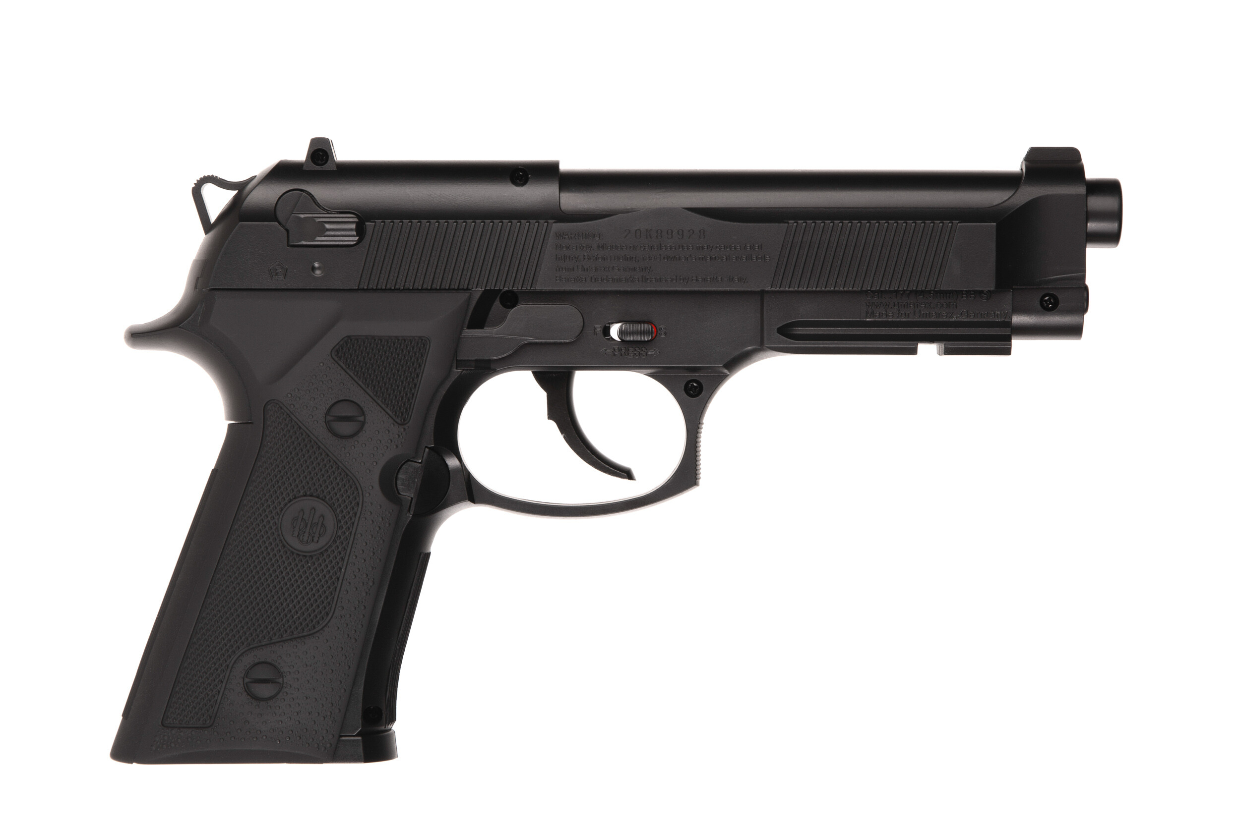 ДетальнішеГазобалонний пістолет з пакетом сталевих кульок та захисними окулярами в комплекті. Прийнятний склад комплекту, стильний дизайн та простота використання, робить дану модель гарним вибором для новачків, що тільки починають своє знайомлення зі світом пневматики. Рекомендований для розважальної стрільби. Серед інших характеристик моделі слід також відзначити наявність планки Weaver/Picatinny під стволом, для додаткових аксесуарів; гладкий ствол; оригінальний дизайн, що копіює вогнепальну модель Beretta 92; металічний ствол та УСМ монтовані в пластиковий корпус, що суттєво знижує вагу; УСМ, за способом зводу, подвійної дії; відкриті прицільні пристрої, мушка з ціликом; запобіжник, розташованій на корпусі з правої сторони; балон СО2 монтується в спеціальний відсік у руків’ї, що за наявності додаткового магазину, дозволяє витрачати менше часу на до зарядку кульками.