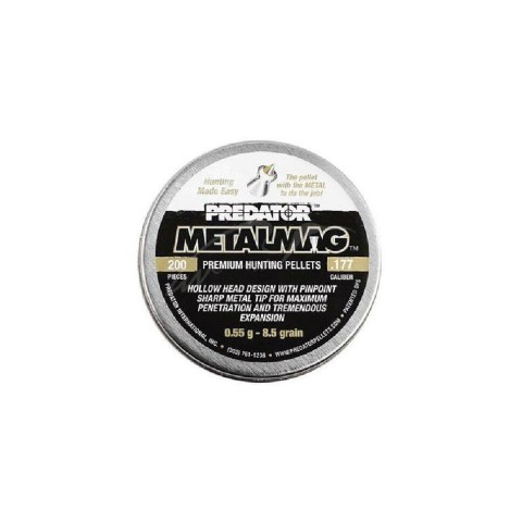 Інформація про кулі JSB Metalmag, 4,5 мм, 0,55 г, 200 штМисливські кулі JSB Predator Metalmag мають унікальну запатентовану конструкцію: в порожнисту голівку свинцевої кульки встановлена загострена металева вставка.