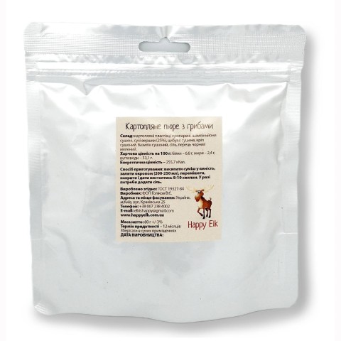 Опис картопляного пюре з грибами Happy Elk (упаковка для запарювання) AC0002: