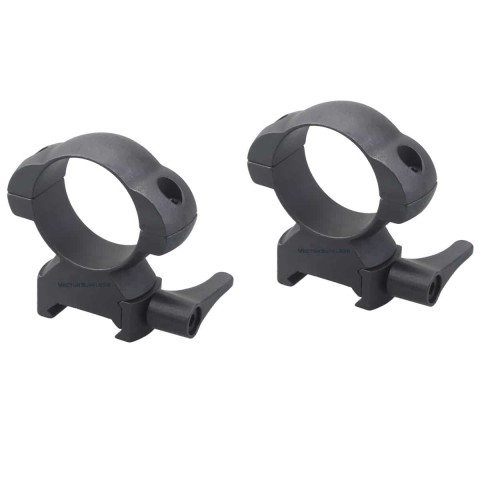 Кільця Vector Optics із внутрішнім діаметром 30 мм виготовлені зі сталі, мають високий профіль, висота від основи до центральної осі становить 27 мм. Кільця легко та швидко знімаються, кріпляться на планку Вівер/Пікатінні 21мм.