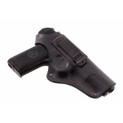 Кобура поясна формована з кліпсою призначена для носіння пістолета ТТ (Тульський Токарєв). Дана кобура виготовлена із щільної натуральної шкіри чорного кольору, завтовшки 2,5-3,0 мм. Формована методом гарячого тиснення формою, скопійованої з оригінального пістолета.