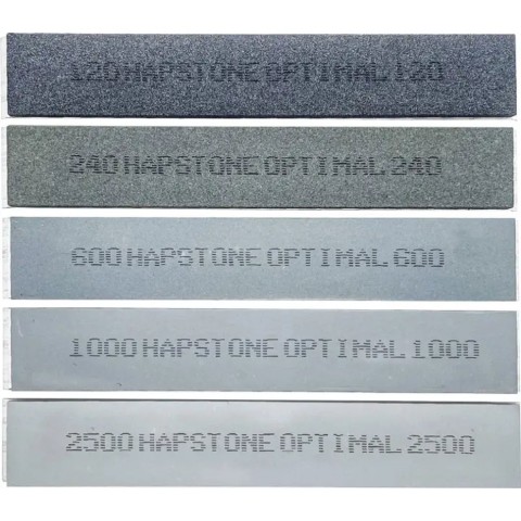 Точильні камені Hapstone призначені для роботи з радіусними заточними системами та мають стандартний типорозмір – 152х25х6 мм. Бруски зроблені з абразивного зерна карбіду кремнію на керамічній зв'язці. Завдяки особливостям використовуваного абразиву та зв'язки, камені є універсальними та відмінно підходять для обробки будь-яких сталей.