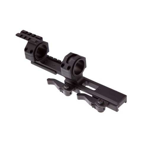 Быстросъёмное крепление для оптического прицела от фирмы NcStar – разработано специально для AR-образных карабинов. Моноблок оснащен различными планками для установки различных аксессуаров (лазерных целеуказателей, фонарей и т.д.), на кольце есть планка для установки дополнительного коллиматорного прицела типа RED DOT.
