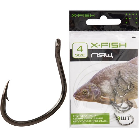 Гачок X-Fish Лящ – моделі із широким піддівом. Особливу увагу приділено формі, завдяки чому гачки цієї серії отримали спеціалізоване призначення, що дозволяє успішно ловити трофейного ляща на об’ємні наживки і насадки. Для оптимального вибору гачка під особливості лову, такі як тип насадки або наживки, розміри очікуваних особин і деякі інші, модельний ряд представлений декількома розмірами. Ці гачки чудово впораються із завданням ефективного підсікання та надійного утримання в процесі виведення також і багатьох інших видів мирної риби. Гачок X-Fish Лящ – вдалий вибір для досвідчених рибалок.