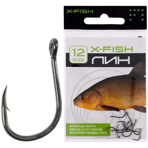 Гачок X-Fish Лин – низка посилених моделей для складних умов і форсованого виведення. Особлива увага приділена формі, завдяки чому моделі набули особливої міцності. Для оптимального вибору гачка під особливості лову, такі як тип насадки або наживки, розміри очікуваних особин і деякі інші, модельний ряд представлений декількома розмірами. Ці гачки також чудово впораються із завданням ефективного підсікання та надійного утримання у процесі виведення коропа, білого амура та іншої великої мирної риби. Гачок X-Fish Лин – вдалий вибір для трофейної риболовлі.