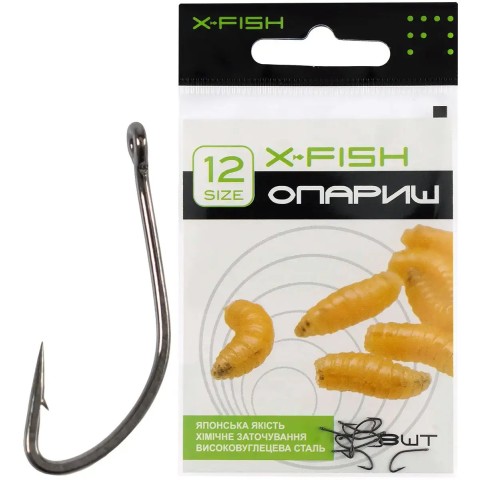 Гачок X-Fish Опариш – серія моделей з прямими цівкою та жалом, завдяки чому вони найбільш зручні для насаджування опариша та пінки у складі донних або поплавцевих оснащень. Особливу увагу приділено формі та товщині дроту, завдяки чому моделі отримали таке спеціалізоване призначення. Для оптимального вибору гачка під особливості лову, такі як кількість личинок, що насаджуються, розміри очікуваних особин і деякі інші, модельний ряд представлений декількома розмірами. Ці гачки чудово впораються із завданням ефективного підсікання та надійного утримання у процесі виведення будь-яких видів мирної риби. Гачок X-Fish Опариш – вдалий вибір для досвідчених рибалок