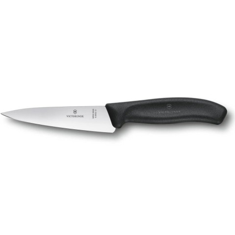 Невеликий кухонний ніж Swiss Classic Kitchen із лезом 12 см від виробника високоякісної ножової продукції VICTORINOX. Надефективний ніж з гладкою кромкою та чорною рукояттю.