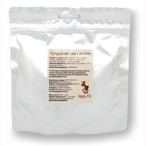 Опис кукурудзяної каші з овочами Happy Elk (упаковка для запарювання) AV0004: