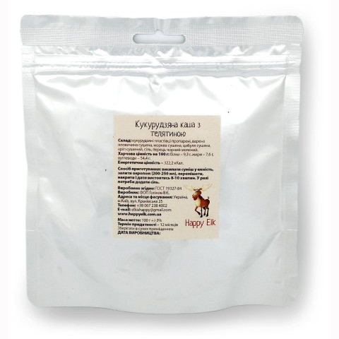 Опис кукурудзяної каші з телятиною Happy Elk (упаковка для запарювання) AM0004: