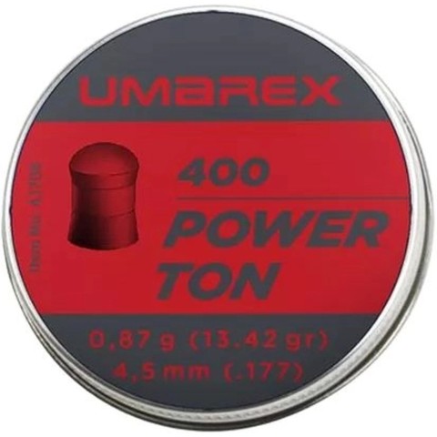 Umarex Power Ton вагою 0,87гр (13,42грейн) Важкі, точні і стабільні кулі з головкою сферичної форми. Power Ton - надважкі кулі типу Diabolo для потужної пневматичної зброї. Завдяки високій вихідний швидкості забезпечує більш високу енергію удару і часто кращу точність, так як менш чутливі до погоди і вітру.