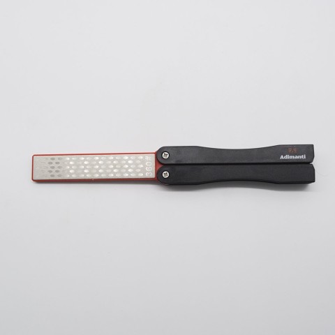 Точилка Adimanti ADSH105 створена спеціально для туристів і всіх інших любителів проводити свій вільний час на природі. Вона компактна ефективна, зручна у використанні. Безпосередньо точильний камінь являє собою брусок довжиною 10 см і шириною 2 см. З обох боків на нього гальванічним методом нанесено найбільш стійке алмазне покриття. Його зернистість з однією з сторін становить 360 грит, що підходить для використання під час грубої початкової заточування сильно затупленого леза. З зворотного боку, зернистість точильного каменю становить 600 грит і підходить для виконання основних робіт по заточенню. При цьому, важливо, що користувач може самостійно вибрати, під яким кутом заточувати свій ніж, тому дана модель підходить для клинків абсолютно будь-якого призначення: від филейных, до мисливських. Крім того, за допомогою Adimanti ADSH105 можна заточити ножиці або деякі інші інструменти. Ніж після заточки рекомендується промити в воді і витерти насухо, а точильний камінь протерти м'якою щіткою.