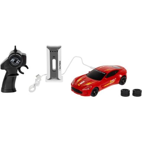 Вона має повний привід для легкого дрифту, ДВІ ПАРИ КОЛІС - пластикові для ковзання та резинові для міцного зчеплення з дорогою.