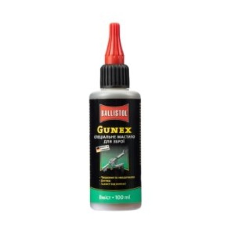 • Виробник: Ballistol • Модель: Gunex • Код товару: 4290150 • Артикул виробника: 23015 • Країна походження: Німеччина • Країна виробник: Німеччина • Тип засобу: Збройове мастило • Об'єм: 100 мл • Довжина в упаковці: 0,150 м • Ширина в упаковці: 0,040 м • Висота в упаковці: 0,040 м • Вага в упаковці: 0,150 кг