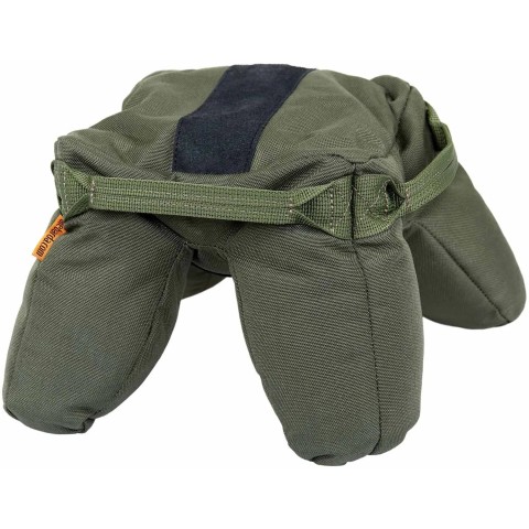 Барикадний - тобто той, який розміщується перед стрільцем, під цівкою - мішок є альтернативою сошкам та дозволяє зручно розташувати зброю на поверхнях, які з якихось причин не підходять для сошок.