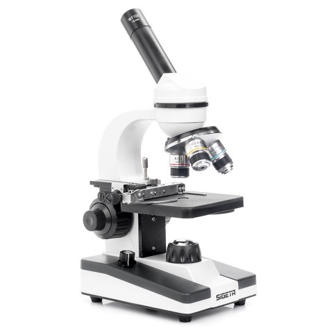 SIGETA MB-120 LED Mono(40x-1000x) —біологічний мікроскоп початкового рівня, один з найбільш купованих шкільних мікроскопів. Ця невисока, компактна модель з гнутою металевою станиною легко поміщається на учнівському столі. Тубус монокулярної насадки дозволяє поворот на 360° в будь-яку сторону, а значить, сусіди по парті зможуть працювати з мікроскопом по черзі, не встаючи.Технічні характеристики:Класифікація: біологічнийПризначення: навчальнийЗбільшення: 40x-1000xОб'єктиви: ахроматичні на 4x, 10x, 40x(s)Окуляри: WF10x, WF25xОптична довжина тубуса: 160 ммТип мікроскопії: світлого поляФокусування: коаксіальне, грубе і точнеТип фокусування: переміщенням предметного столикаПредметний столик: 95 x 95 ммМікрометричні супорти з ноніус-шкалоюЗміна висоти предметного столика: до 15 ммДискова діафрагма на 6 отворів різного діаметруПідсвітка: нижня з лінзою-колекторомТип освітлення: LED лампа 1 Вт з плавним регулюванням яскравостіЖивлення: від акумулятора та через блок живлення від мережі 220 ВАкумулятор 3.7 В ємністю 2000 мАгКонструктивні особливості:Насадка: монокулярна (оборот на 360º, нахил на 45º)Посадковий діаметр окуляра: 23.2 ммРевольверна головка: на 3 об'єктива, орієнтована назовніГвинтовий стопор для предметного столикаКорпус: металевий з пластиковими накладкамиПрогумовані ніжки для запобігання ковзанняКомплектація:МікроскопОб'єктиви — 3 шт.Окуляри — 2 шт.Блок живлення з індикатором підключенняПилозахисний чохолІнструкціяГабарити:Розміри упаковки: 19.5 х 27 х 39.5 смВага упаковки: 2.07 кгРозміри мікроскопа: 16 х 11.5 х 30 смВага мікроскопа: 1.57 кг