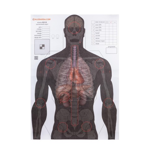 Мишень ALB50 предназначена для тренировок подразделений личной охраны, спецслужб, правоохранительных органов, военных. На мишени изображен силуэт в натуральную величину и отмечены зоны приоритетного поражения, попадания в которые обладают наибольшим останавливающим эффектом.