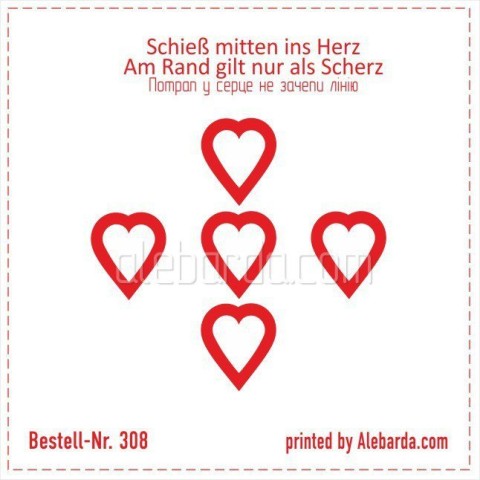 Мишень для развлекательной, высокоточной стрельбы на дистанции 100м. Пораженной она считается в случае если незадета линия. Трудность ее поражения заключается в сложной форме самой мишени и расположении точки попадания не в центре масс. Размер зачетной зоны всего на один миллиметр больше калибра. Ходят слухи, что при поражении всех пяти сердец в подарок отдают прицел ))