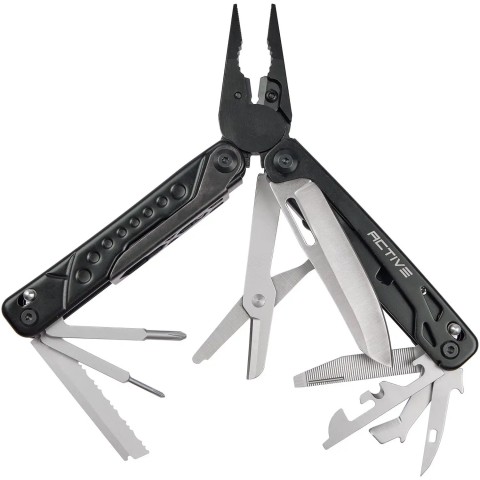 Active Boa – це багатофункціональний інструмент, який має широкий спектр застосування та стане незамінним помічником як у місті, так і в польових умовах. Мультитул має ергономічний дизайн, завдяки якому зручно лягає в руку. Серед додаткових інструментів варто відзначити меч з нержавіючої сталі довжиною 78 мм. Рукоятка і плоскогубці мають чорне покриття антивідблиску. Мультитул Active Boa комплектується нейлоновим чохлом.