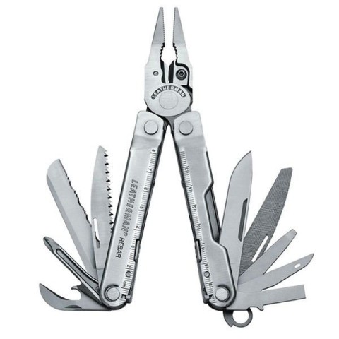 Інформація про мультитул Leatherman RebarНове укладання інструментів дозволило не тільки суттєво збільшити довжину основних інструментів (ножів, напилка та ножівки), але й спростити їхнє відкривання. Тепер їх можна привести до робочого положення, не розкриваючи інструмент повністю. Спеціальні отвори створені для відкривання однією рукою, що суттєво прискорило підготовку інструменту до роботи. Введено опцію битоутримувача.